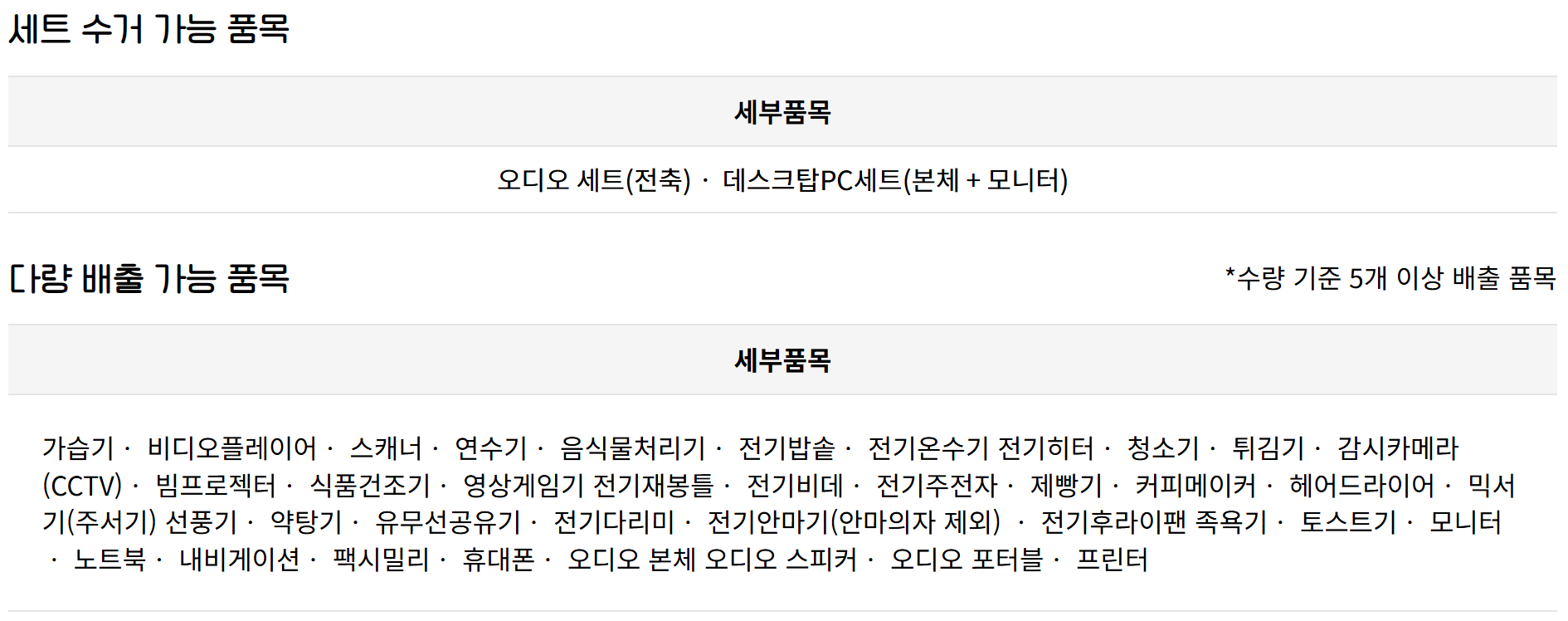 🎯 무료수거 대상 품목